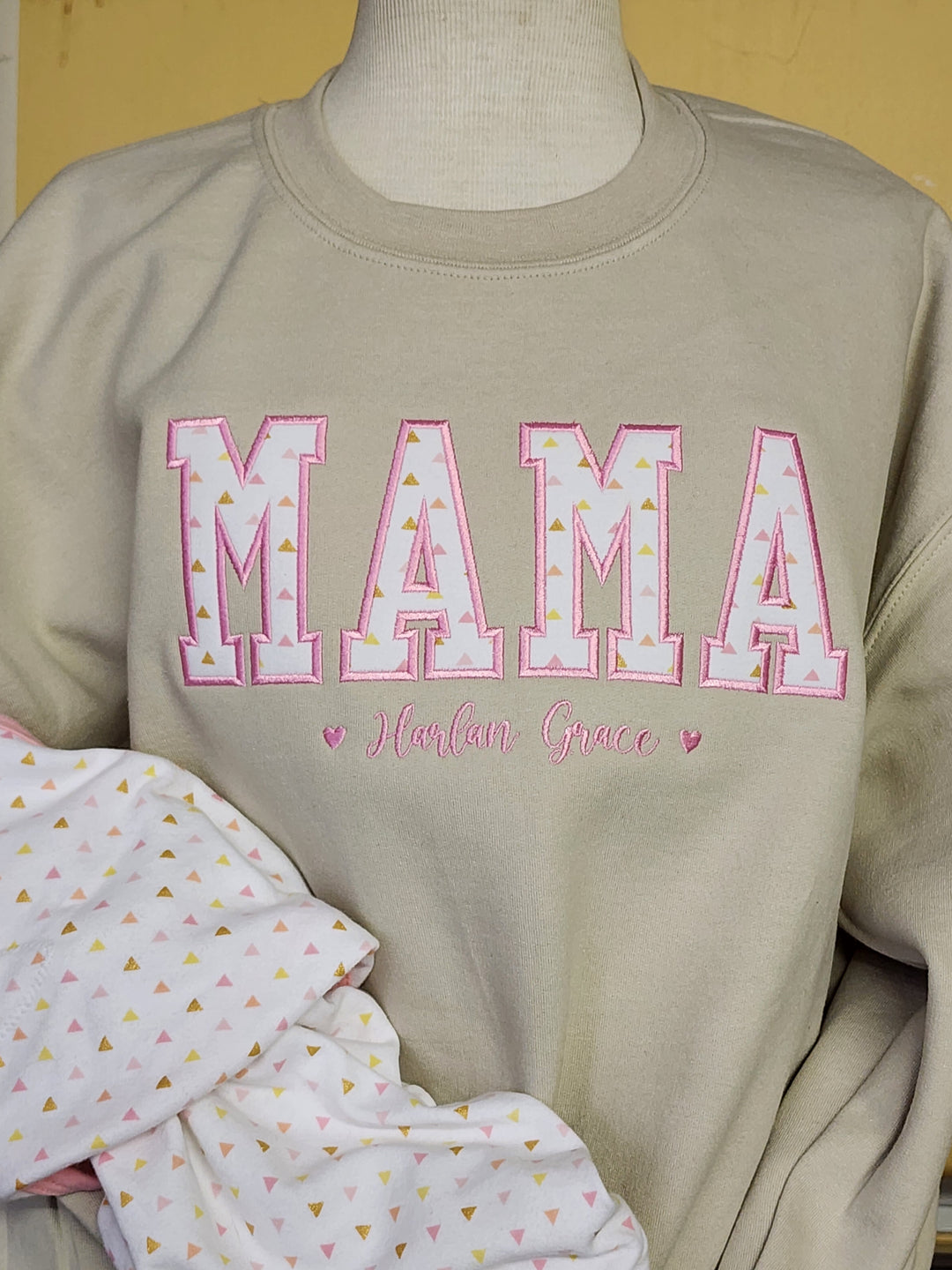 Appliqué is a bold, textured decoration technique where fabric pieces are stitched onto a garment to create larger, eye‑catching designs. It adds dimension, softness, and a premium look—perfect for standout lettering, mascots, and statement graphics.
